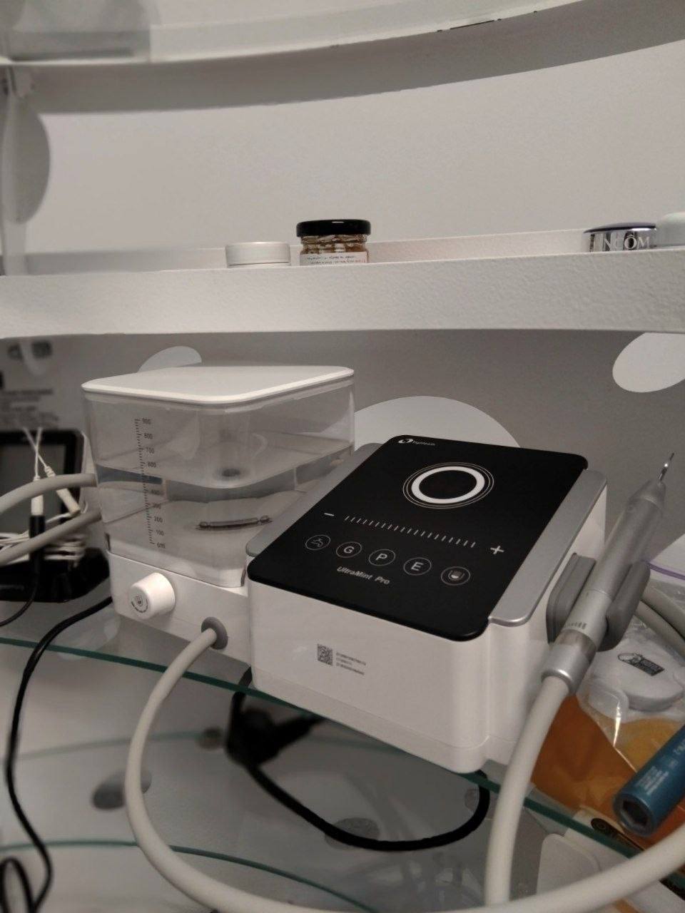 Апарат для професійної гігієни, який поєднує ультразвукову чистку та полірування для делікатного й ефективного догляду за зубами.